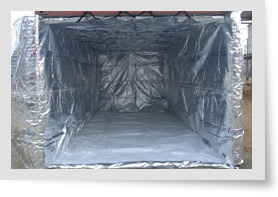 Manufactured out of pp laminated with MET PET and PET, providing excellent barrier properties against oxygen migration. Also provides robust interface protection between the walls of the container and the flexitank. It provides excellent insulation properties. Can be envisaged in box form or blanket form. |